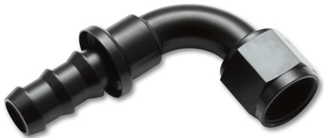 Fitting, Hose End, Push-On, 90 Degree, 8 AN Hose Barb to 8 AN Female, Aluminum, Black Anodized, Each