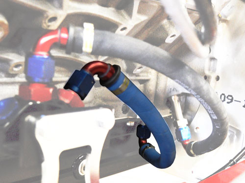 GOES FROM THE ENGINE FRONT FITTING TO SIDE FITTING ON FILTER MOUNT