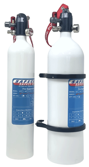 Safecraft’s Model SC for sprint cars is completely automatic and includes a manual backup for added protection. Safecraft’s unique, fast-acting thermal sensor and compact, slim design targets hard-to-reach high risk areas & tight spaces—perfect when you need ‘mini’ without sacrificing ‘might’! The Model SC packs a powerful punch with 3M™ Novec™ 1230 Fire Protection Fluid in a 3 or 5 lb white aluminum cylinder.