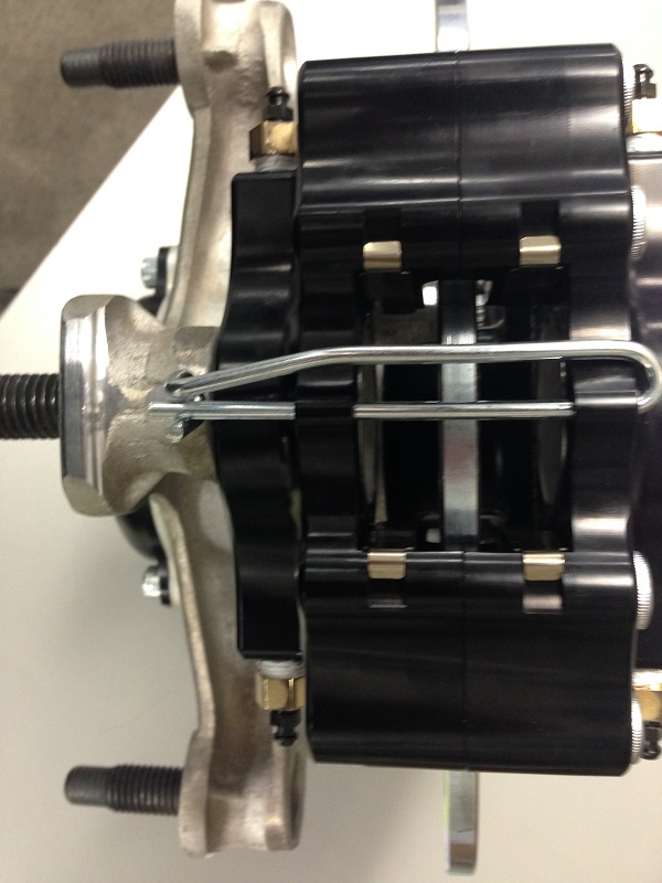NO THREADS, MOUNTS ON SPINDLE TOWARDS CENTER OF CAR AND OUTSIDE OF CALIPER