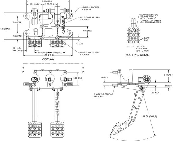 /Products/WILWOOD (WIL)/PEDALS and BALANCE BARS/Adjustable-Trubar Dual Pedal - Brake / Clutch - Re